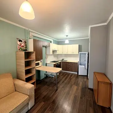 Здається затишна однокімнатна студія. Квартира розташована в 200 метрах від зупинки Районна лікарня. В пішій досяжності продуктові магазини, салон краси, спортзал, лікарня, школа. В квартирі є спальня, розташована на другому ярусі. Планування: смарт-квартира. Санвузол: суміжний. Ремонт: авторський проект.