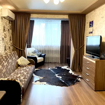 Кімната обладнана кутовим диваном з двома спальними місцями, розсувною шафою та телевізором. У спальні є двоспальне ліжко розміром 1,6 * 2 м, розсувна шафа і комод. Санвузол оснащений сучасною сантехнікою, ванною 160 см, тропічним душем та біде. Є пральна машина, посудомийна машина, великий холодильник з подвійною морозильною камерою. Кухня обладнана меблями, електрочайником, варильною панеллю, мікрохвильовою піччю та духовою шафою.