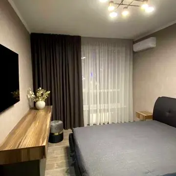 Квартира має роздільне планування та суміжний санвузол. Стан ремонту хороший, квартира готова до заселення. У квартирі є центральне опалення, централізоване водопостачання та газ. Встановлені лічильники. Квартира повністю мебльована та обладнана необхідною побутовою технікою. Є меблі на кухні, холодильник, варильна панель, духова шафа, електрочайник, мікрохвильова піч, пральна машина. Також є телевізор та швидкісний інтернет. Можливе проживання з домашніми улюбленцями (котик, інша тваринка). Квартира розташована в ЖК Атлант. Будинок має закритий двір, охорону та відеоспостереження. Також є паркувальне місце, консьєрж та ліфт. Район має розвинену інфраструктуру, поруч є магазини та зупинки громадського транспорту. Це тихе місце в центральній частині міста. Квартира світла та затишна, оснащена кондиціонером (зима/літо) та душовою кабіною. Є відеоспостереження.