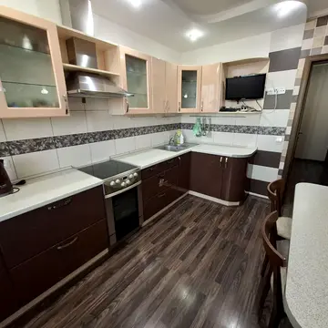 Квартира має роздільне планування. Виконано якісний євроремонт із використанням дорогих матеріалів. Кухня-студія та дві спальні.