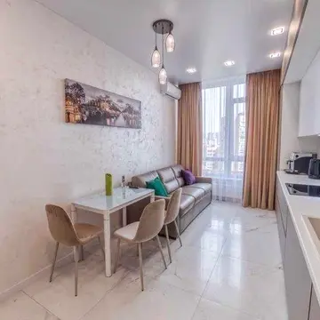 Квартира з якісним сучасним ремонтом, виконана у нейтральній стилістиці. Роздільне планування включає простору кухню-вітальню, окрему спальню та суміжний санвузол. Квартира має автономне опалення та підключена до центральної каналізації та електрики. Є бойлер. Підключено резервне живлення, працює ліфт, опалення, інтернет та водопостачання навіть під час блекауту. Встановлено лічильники. Квартира повністю укомплектована меблями та технікою, зокрема є велике ліжко з приємним текстилем, місткі шафи, телевізор, Wi-Fi, кондиціонер, посудомийна машина, електрочайник, холодильник, фен, варильна панель, праска, мікрохвильова піч, духова шафа, плита, пральна машина, підігрів підлоги. Квартира здається в оренду на короткий термін. Комісія становить 50%% від вартості послуг за місяць. Клінінг проводиться щотижня. Квартира розташована в престижному центральному районі з розвиненою інфраструктурою. У будинку є відеоспостереження, консьєрж та панорамні вікна. Поблизу знаходяться магазини, кафе, ресторани, бізнес-центри та зручна транспортна розвязка. У пішій доступності є метро. Квартира доглянута та готова до заселення. Є багато місць для зберігання. Панорамні вікна наповнюють простір природним світлом та відкривають вид на місто.