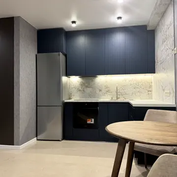 Квартира повністю укомплектована меблями та технікою для комфортного життя, включаючи посудомийну машину, електрочайник, холодильник, варильну панель, праску, мікрохвильову піч, духову шафу, пилосос, пральну машину, телевізор та Wi-Fi. Також є меблі на кухні.