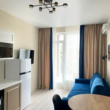 Квартира має планування смарт-квартири з суміжним санвузлом. Вона виконана з євроремонтом. Квартира має власну котельню для опалення. Під час відключення світла є вода та опалення. Квартира повністю укомплектована необхідними меблями та технікою. Тут є меблі на кухні, духова шафа, холодильник, пральна машина, електрочайник, варильна панель та мікрохвильова піч. Квартира здається тільки сімям. Домашні улюбленці не дозволені. Будинок належить до житлового фонду 2011 року. У будинку є ліфт, консьєрж, підземний паркінг, панорамні вікна, пожежна сигналізація, відеоспостереження та вантажний ліфт. Під час відключення світла працюють інтернет, ліфт, водопостачання та опалення. Квартира розташована в 400 метрах від моря. На першому поверсі будинку є супермаркет "Таврія". Квартира має терасу площею 8 кв.м. У квартирі є ванна, кондиціонер, Wi-Fi.