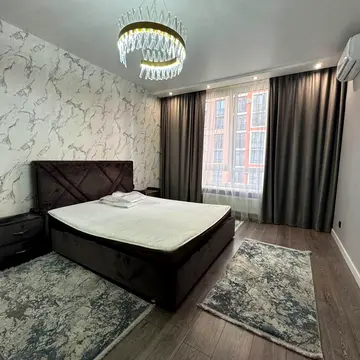 Квартира повністю укомплектована дорогими меблями та побутовою технікою, включаючи електрочайник, плиту, духову шафу, мікрохвильову піч, холодильник, посудомийну машину, пральну машину, сушильну машину та праску.