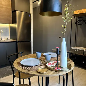 Квартира повністю мебльована та оснащена технікою. Є розкладний диван, ліжко, 3 шафи, комод, 4 тумби, 2 навісні тумби, 2 полиці, 2 приліжкові тумби, кухонний стіл, 4 стільці та кухонний гарнітур. Кухонна зона зручна для приготування смачних страв. Зони відпочинку та сну створені для вашого комфорту. Достатньо місця для організованого зберігання речей, розміщення додаткових меблів, техніки та декору. Квартира оснащена технікою: телевізор, Wi-Fi-роутер, пральна машина, бойлер, холодильник, плита з духовою шафою, витяжка, мікрохвильова піч та чайник.