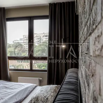 Квартира має сучасне планування з євроремонтом. Включає кухню-вітальню, спальню з власною гардеробною, просторий суміжний санвузол, гардеробну кімнату та балкон. Балкон має чудовий краєвид на Київ.