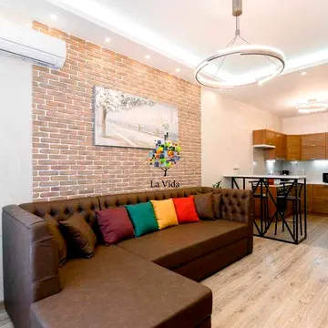 Квартира має роздільне планування та авторський проект ремонту. Вона повністю укомплектована меблями. В будинку є генератор, що забезпечує автономність при блекауті, а також працює інтернет та водопостачання. Також є підігрів підлоги. Квартира повністю укомплектована для комфортного проживання, включаючи меблі на кухні, гардероб, кондиціонер, душову кабіну, телевізор та швидкісний інтернет. Комісія АН складає 50%%. Дозволено тримати маленького песика (до 10 кг). Житловий фонд будинку 2011-2020-і роки. Територія закрита, з охороною та відеоспостереженням. Є підземний паркінг. Поруч розташовані кафе, ресторани, магазини, салони краси. Також поблизу знаходиться ЖК «Бульвар Фонтанів». Зручна транспортна розв’язка, метро в пішій доступності. Квартира оснащена кондиціонером, підігрівом підлоги, меблями на кухні, душовою кабіною та гардеробом. Є телевізор та швидкісний інтернет.