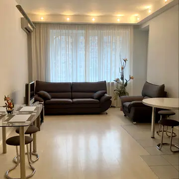- В кімнаті комфортний диван-єврокнижка (спальне місце 160х200см), містка велика шафа, журнальний столик, комод, склопакети та жалюзі на вікнах.
