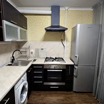 Квартира має суміжно-прохідне планування кімнат. Санвузол роздільний. У квартирі виконано косметичний ремонт. Є балкон та лоджія. Опалення централізоване. Встановлені лічильники води. Газопостачання централізоване, що не залежить від електроенергії. Центральна каналізація та центральний водопровід. Квартира мебльована. З побутової техніки наявні холодильник, мікрохвильова піч, плита та пральна машина. Будинок девятиповерховий. В квартирі встановлено домофон. Є ліфт. Квартира розташована у зручному районі з розвиненою інфраструктурою. У кроковій доступності знаходяться станція метро Лівобережна, поліклініка, аптека, магазини, школа, дитячий садок, пошта, ресторани, кафе. Русанівська набережна знаходиться за 3 хвилини від будинку. З вікон квартири відкривається вид на Русанівський канал. Встановлено супутникове ТБ, телевізор та Wi-Fi. Є ванна.