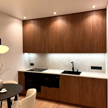 Квартира повністю мебльована та оснащена технікою престижних виробників. Є функціональні меблі, які можна переставляти за бажанням. Кухонна зона зручна для приготування смачних страв. Зони відпочинку та сну створені для комфорту. Вхідна група та ванна кімната гармонійно поєднують стиль і практичність. Достатньо місця для організованого зберігання речей, розміщення додаткових меблів, техніки та декору. Є посудомийна машина, сушильна машина, електрочайник, холодильник, фен, варильна панель, праска, мікрохвильова піч, духова шафа, пилосос, пральна машина. Також є кабельне та цифрове ТБ, швидкісний інтернет, телевізор та Wi-Fi.