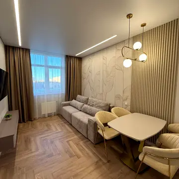 Квартира має вільне планування та кухню-вітальню. Виконано авторський проект ремонту, що свідчить про якісний та дорогий ремонт. Санвузол суміжний.