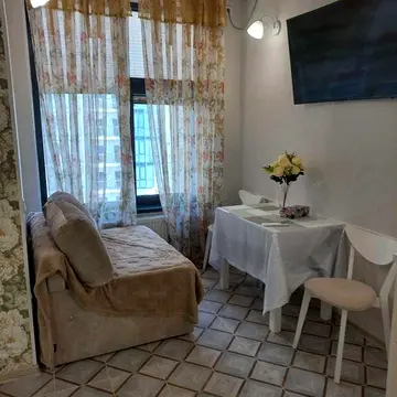 Квартира студійного типу з євроремонтом. Санвузол суміжний. Є балкон. Опалення від власної котельні. Підключене резервне живлення, працює ліфт, опалення та водопостачання. Квартира повністю укомплектована необхідними меблями та побутовою технікою. Є кондиціонер, плазмовий телевізор, варильна панель, холодильник, пральна машина. Наявний швидкісний інтернет та Wi-Fi. Новий будинок з паркінгом та генератором. Наявні консьєрж, відеоспостереження, охорона території, пожежна сигналізація, гостьовий та підземний паркінги, вантажний ліфт. Поблизу розташований автовокзал. Відмінна транспортна розвязка. Вид з балкона у двір.