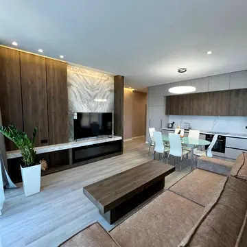 Предлагаю в аренду квартиру на 2 спальни, с кабинетом, гостиной, столовой с камином, 2-мя санузлами, гардеробной, отдельной кухней и с 2-мя балконами