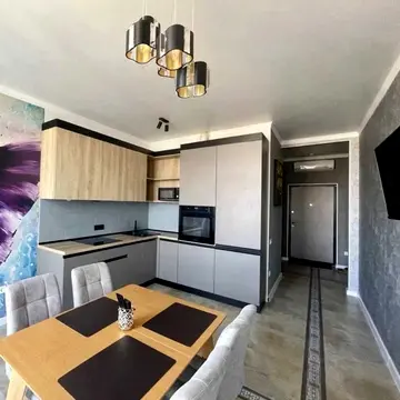 Квартира складається з окремої спальні з гардеробною, кухні-вітальні з розкладним диваном, гардеробної кімнати та ванної кімнати з душовою. Планування роздільне. Ремонт авторський проект.