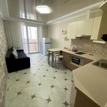 Квартира з євроремонтом, роздільним плануванням і суміжним санвузлом. Формат квартири включає кухню-вітальню площею 35 кв.м., спальню площею 30 кв.м., ванну кімнату та лоджію.