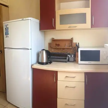 У квартирі є все необхідне для проживання: пральна машина, холодильник, бойлер, два телевізори (на кухні та в кімнаті), шафа, двомісне ліжко та маленький диванчик. Також є плита та духова шафа.