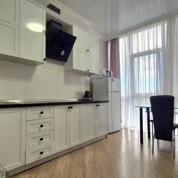 Квартира з авторським проектом ремонту. Вона повністю укомплектована меблями та технікою. Квартира повністю укомплектована меблями та технікою. Можливе проживання з домашніми улюбленцями: котиком, маленьким песиком (до 10 кг), середнім песиком (до 25 кг) або іншою тваринкою. Житловий комплекс "16 Жемчужина" має паркінг. Квартира має вид на море.