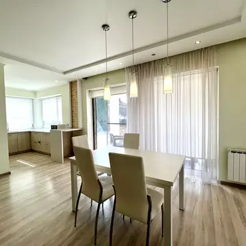 Квартира повністю мебльована та оснащена необхідною побутовою технікою. Кухня обладнана вбудованою технікою: газова плита, духова шафа, потужна витяжка, велика посудомийна машина, великий холодильник, мікрохвильова піч, гриль, електричний чайник. Вітальня має розкладний диван та велику вбудовану шафу. Спальня оснащена двоспальним ліжком з ортопедичним матрасом, кондиціонером та вбудованою шафою. Ванна кімната має велику кутову ванну, пральну машинку, великий бойлер.