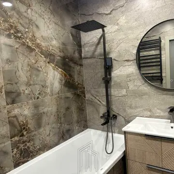 Ванна кімната з новою сантехнікою, плитка, бойлер, душова кабіна.