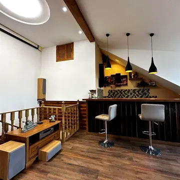 Будинок 3 поверхи. Перший поверх: тераса, їдальня, кухня, санвузол, зал, два виходи. Другий поверх: дві спальні (кожна з санвузлом), кабінет і гардеробна. Третій поверх: кухня студія, санвузол з сауною, спальня з гардеробною. Ремонт косметичний. Система опалення: індивідуальне газове. З меблями. Є домашній кінотеатр. Оплата перший і залоговий місяць + комісія агентства 50%%. Міні дворик, місце під три машини.