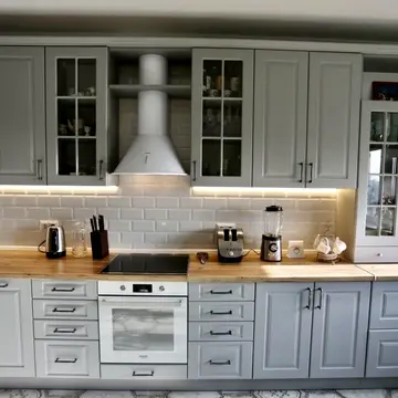 На кухні - кухоні меблі, красива обідня зона, зона ТБ, уся необхідна побутова техніка.