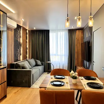 Стильна квартира з дизайнерським ремонтом, де продумана кожна деталь Сучасний інтер’єр у теплих природних відтінках створює атмосферу затишку та комфорту з перших хвилин. Простора кухня-вітальня з обідньою зоною, акцентним освітленням та панорамними вікнами — ідеальне місце як для життя, так і для прийому гостей. У квартирі виконаний якісний дизайнерський ремонт із використанням преміальних матеріалів: — натуральні текстури дерева та каменю — стильне зоноване освітлення — повністю укомплектована кухня — м’які меблі та техніка — кондиціонери, багато місць для зберігання Планування максимально функціональне та комфортне для сучасного ритму життя: простора кухня-вітальня, дві окремі кімнати, гардероб, два санвузла. Комфортний низький поверх. Квартира готова до заселення без додаткових вкладень. Ідеальний варіант для тих, хто цінує стиль, комфорт та естетику в кожній деталі Перегляд у зручний для Вас час!