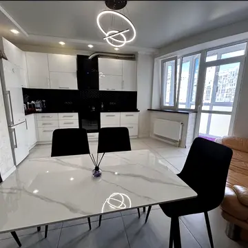 Квартира після капітального ремонту з євроремонтом. Планування включає кухню-їдальню, вітальню та дві окремі кімнати. З кухні є засклена лоджія. Санвузол суміжний. Квартира має центральне та автономне електроопалення. У квартирі є вбудовані меблі та техніка.