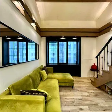 Квартира має цікаве планування з двома рівнями. На першому поверсі розташовані санвузол, кухня та житлова кімната. Другий поверх займає кімната, де зоновані спальна зона та робочий простір. Квартира має житлові тарифи на електрику. Без комісії для покупця. Будинок розташований у розвиненому районі міста Ірпінь. В пішій доступності є все необхідне для комфортного життя, включаючи зупинку громадського транспорту з маршрутом до столиці.