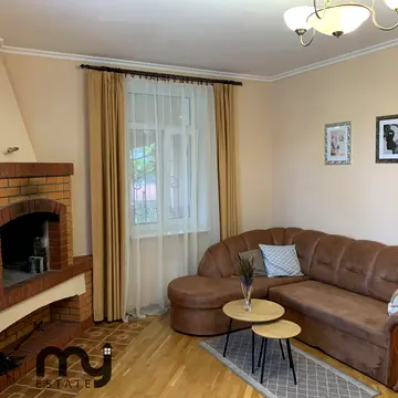Оренда затишного будинку в приватному секторі Голосіївського району, вул. Добрий шлях (10-15 хв пішки від метро Голосіївська) Площа будинку – 140 кв. м. Ділянка – 2 сотки + гараж і паркомісце біля гаража. Двоповерховий будинок з 4 кімнатами 2 санвузлами і всіма зручностями. 1 поверх: прихожа, кухня, санвузол, зала з каміном. 2 поверх: 3 кімнати, санвузол, балкон. Є доступ підвалу. • Кімнати: - Зала на 1 поверсі має камін, зручний кутовий диван, телевізор, стіл зі стільцями і журнальний столик. - Три кімнати на другому поверсі передбачені під 2 спальні і 1 кімнату вільного призначення, яку за потреби можна перетворити в ще одну спальню або робочий кабінет. В кімнатах є 2 двоспальних ліжка, шафи та інші дрібні меблі. Одна зі спалень має вихід на затишний відкритий балкон зі столиком. • Кухня має робочу поверхню, газову варильну поверхню, витяжку, обдіній стіл зі стільцями, холодильник, посудомийну машину, духову шафу. • Санвузли: в санвузлі на першому поверсі є умивальник з дзеркалом, унітаз і душова. На другому поверсі в санвузлі є ванна, унітаз, умивальник з дзеркалом. • Двір – маленький, 2 сотки, з деревом, не забиратиме у вас сил і часу на догляд. Є велика крита зона барбекю-тераса для відпочинку з мангалом і столиком. • Гараж на 1 машину. В гараж заїзд прямо з вулиці через автоматичні ворота. Є додаткове паркомісце перед гаражем. • Будинок гарно утеплений, підключені міські комунікації, комунальні платежі на зиму і літо фіксовані (оскільки будинок є таунхаусом і котельня спільна на цей і сусідні будинки). Електроенергія по лічильнику, установлений генератор з автоматикою. Оптоволоконний інтернет. • Тихий район, приватний сектор, зручний, асфальтований підїзд, розвинена інфраструктура – все необхідне поруч і в пішій доступності метро Голосіївська