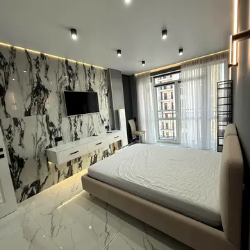 Квартира повністю укомплектована меблями, включаючи двоспальне ліжко, підліткове ліжко, розкладний диван, вбудовані шафи, столи, стільці та ін. Також є вся необхідна побутова техніка: холодильник, газова плита, посудомийна машина, пральна машина, мікрохвильова піч, духова шафа, праска, електрочайник, телевізор звичайний 2 шт, сушильна машина, фен, варильна панель, мультиварка, пилосос.