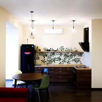 Квартира повністю мебльована і оснащена необхідною технікою, включаючи електрочайник, холодильник, мікрохвильову піч, плиту, пилосос, пральну машину, телевізор, кондиціонер та швидкісний інтернет.