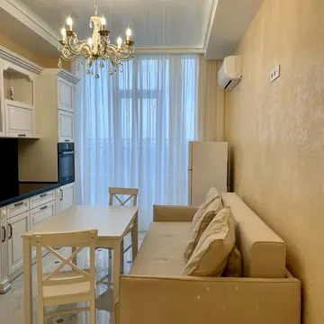 Квартира з роздільним плануванням, що має свіжий ремонт у світлих тонах. Є панорамні вікна.
