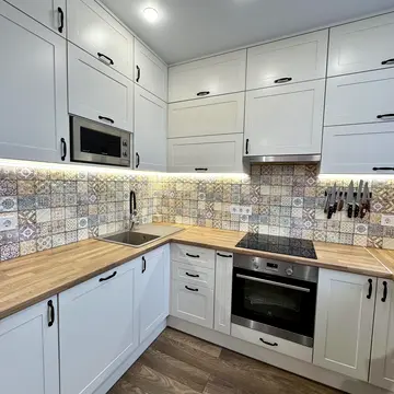 Індукційна варочна поверхня, вбудована мікрохвильова піч та духова шафа, холодильник, бойлер, посудомийна машина, пральна машина, інверторний кондиціонер з відстежуванням розташування людей для комфортного спрямування потоку, wi-fi, відеодомофон з датчиком руху.