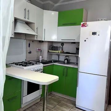 Квартира мебльована, є ліжко, посудомийна машина, ТВ плазма, холодильник, варильна панель, мікрохвильова піч, духова шафа, плита, пральна машина. Також є електрочайник.