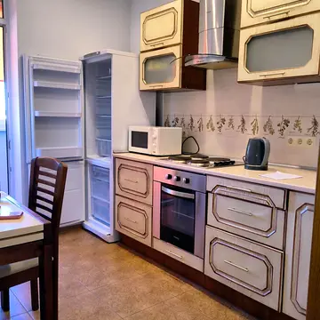 Квартира здається з меблями. Наявна побутова техніка: холодильник, пральна машина, варильна панель, праска, електрочайник, плита, посудомийна машина, пилосос, духова шафа, мікрохвильова піч. Також є кабельне, цифрове ТБ.