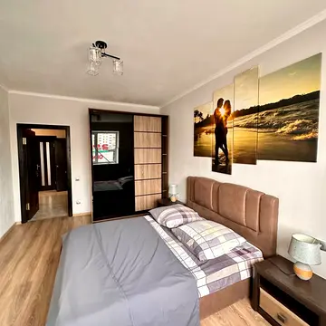 Кухня-вітальня обладнана кухонним гарнітуром, газовою плитою, духовкою, мікрохвильовою піччю та електрочайником. Також встановлено холодильник та морозильна камера. Для відпочинку передбачено мякий куточок, обідній стіл та крісло. У вітальні є великий кутовий розкладний диван, додаткова софа, телевізор на стіні, тумба та підлогове дзеркало. Спальня оснащена двоспальним ліжним з тумбами та місткою шафою-купе з дзеркальними вставками. Ванна кімната обладнана душовою кабіною, пральною машиною та рушникосушкою. У туалеті встановлено додатковий рукомийник. Побутова техніка включає: електрочайник, холодильник, варильну панель, мікрохвильову піч, духову шафу, пилосос, пральну машину. Мультимедіа: кабельне, цифрове ТБ, швидкісний інтернет, телевізор, Wi-Fi.