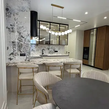 Квартира має кухню-студію та окрему спальню. Ремонт виконано в стилі євроремонт. Планування передбачає суміжні кімнати.