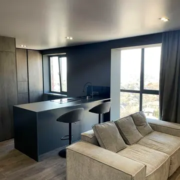 Квартира облаштована усім необхідним для комфортного проживання. Є комбінована плита, холодильник, мікрохвильова піч, кухонний стіл та стільці, 2 великі шафи, велике королівське ліжко (2м) з новим ортопедичним матрацом, приліжкові тумбочки, диван (розкладається, є додатковий матрац зверху для зручного сну), письмовий стіл, стіл-книжка, диван тахта, телевізор, пилосос та пральна машина.