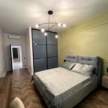 Вишукана простора квартира з авторським дизайнерським ремонтом високого рівня, з використанням натуральних матеріалів. Виконані роботи відомих українських скульпторів. Планування квартири включає: 2 спальні (кожна з яких зі своїм санвузлом та гардеробом), велика простора вітальня, кухня, обідня зона, зона відпочинку.