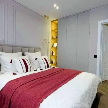 Квартира мебльована. Побутова техніка включає холодильник, пральну машину, духову шафу, варильну панель, праску, електрочайник, пилосос, посудомийну машину, сушильну машину, фен та мікрохвильову піч. Також є телевізор.