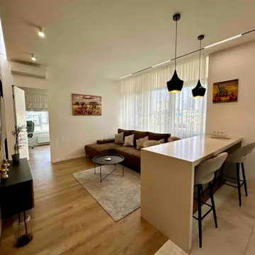 Квартира повністю мебльована. Є меблі на кухні, а також побутова техніка, включаючи посудомийну машину, електрочайник, холодильник, варильну панель, духову шафу, пральну машину та кондиціонер. Є мультимедіа: кабельне та цифрове ТБ, супутникове ТБ, швидкісний інтернет, телевізор та Wi-Fi.