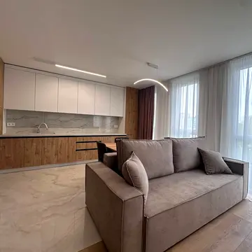 Квартира має світлий, стильний простір з якісним ремонтом у сучасних тонах. Планування включає кухню-студію та окрему спальню. Ремонт виконано за авторським проектом. Система опалення індивідуальна газова. Наявні комунікації: центральна каналізація, електрика, газ, центральний водопровід. Квартира обладнана побутовою технікою: посудомийна машина, електрочайник, холодильник, варильна панель, мікрохвильова піч, духова шафа, пральна машина. Також є телевізор та Wi-Fi. Квартира розташована в ЖК Велика Британія. Наявний гостьовий паркінг. Локація квартири є однією з головних переваг: ближній центр, поруч магазини, супермаркети, кафе, зручна транспортна розв’язка. Квартира дуже затишна, з продуманим наповненням і комфортною атмосферою. Наявний кондиціонер. Санвузол суміжний. Є душова кабіна.