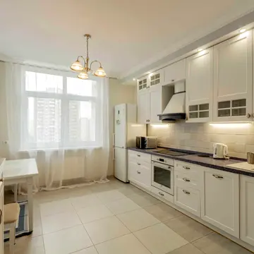 Квартира повністю укомплектована меблями та технікою: духова шафа, плита, мікрохвильова піч, пральна машина, холодильник, кондиціонер, телевізор, диван, шафи, меблі на кухні та гардероб. Також є посудомийна машина та електрочайник.
