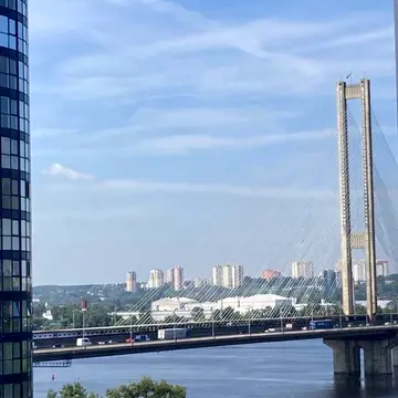 До метро Славутич пішки 5 хв, зупинка автобуса 5 хв, виїзд із комплексу одразу на Дарницький міст.