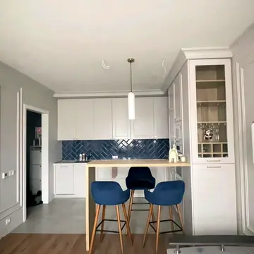 Квартира має роздільне планування, що включає кухню-студію, спальню, суміжний санвузол з ванною, гардеробні та балкон. Ремонт виконано за євростандартом. Підлога покрита кварц-вінілом з алюмінієвими плінтусами, у ванній кімнаті є тепла підлога. Стіни оброблені гіпоалергенною фарбою з антивандальним покриттям. Санвузол оздоблений іспанською плиткою та обладнаний сучасною сантехнікою, підсвітками та сенсорним полотенцесушителем. Двері прихованого монтажу.