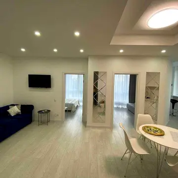 Квартира має планування кухня-студія та окрема спальня. Висота стель становить 3 метри. Ремонт виконано за авторським проєктом.