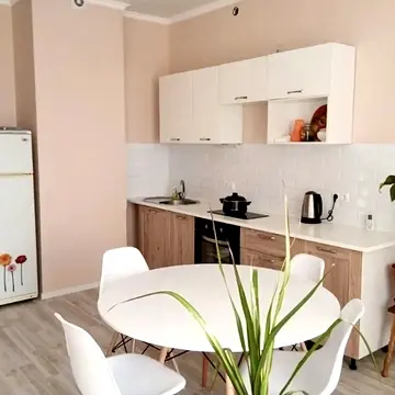Квартира мебльована, включає двоспальний розкладний диван, вбудовану кухню. Побутова техніка представлена електрочайником, холодильником, варильною панеллю, праскою, мікрохвильовою піччю та пральною машиною. Мультимедіа включає кабельне, цифрове ТБ, супутникове ТБ, швидкісний інтернет, телевізор та Wi-Fi.