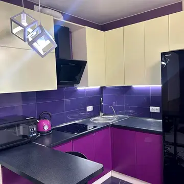 Квартира повністю мебльована та оснащена побутовою технікою престижних виробників. Є посудомийна машина, сушильна машина, електрочайник, фен, варильна панель, праска, мікрохвильова піч, духова шафа, пилосос, пральна машина, телевізор. Наявні меблі на кухні.