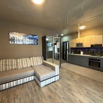 Квартира має роздільне планування з суміжним санвузлом. У квартирі євроремонт. Планування включає 2 просторі спальні з виходом на лоджію та велику кухню-студію.