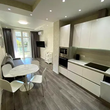 Квартира має планування кухня-студія та спальня з балконом. Ремонт виконано за авторським проєктом.